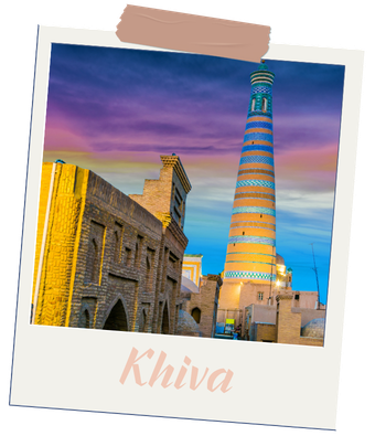 Visita incluida: Ichan-Kala (Kalta Minor, madrasa Mohamed Amin Khan, Kunya Ark, madrasa Mohammed Rakhim Khan y mezquita Juma, exteriores).